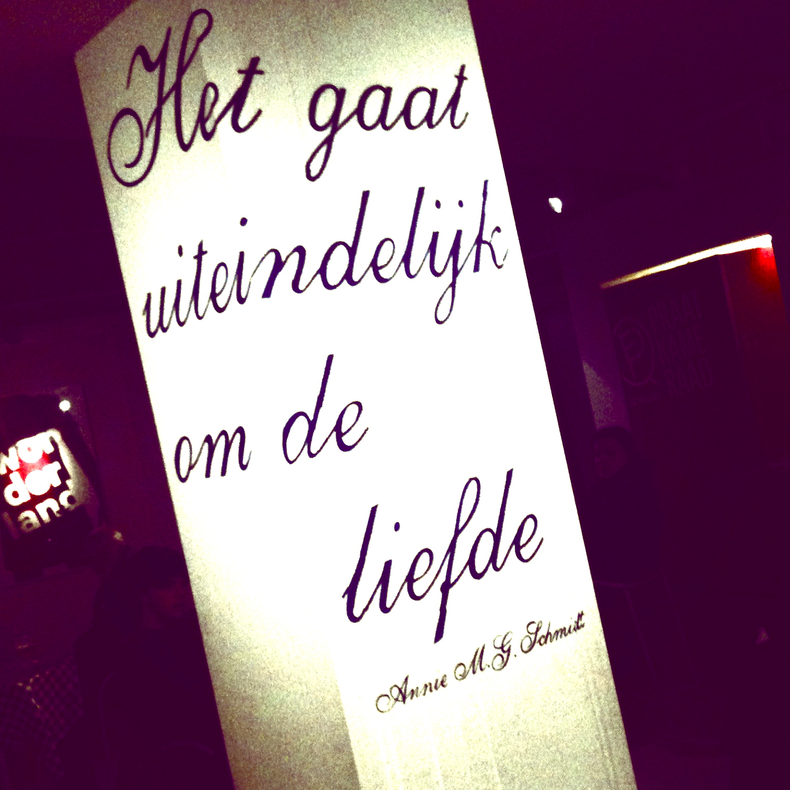 Bij momenten denkt ze dat het even plots weer zal ophouden als het begonnen is. Dat ze zal ontwaken uit een levensechte droom die tijdelijk niet meer van de realiteit te onderscheiden viel. Een droom die de toekomst onherroepelijk zou hertekenen omdat in dromen alles kan/mag/moet. Omdat het een droom is. Maar ze vergist zich. Telkens de gedachte nog maar voorzichtig opkomt, heeft hij alweer een nieuwe lantaarnpaal in petto die ze net niet heeft zien aankomen. Ze geeft hem lik op stuk.